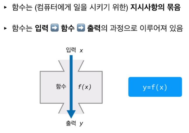 함수는 입력(input)을 받아, 출력(output)을 하는 하나의 작은 기능 단위이다.