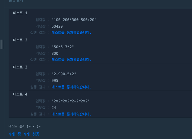 // 3. 우선 순위대로 괄호를 넣고 eval로 계산한 것을 다시 newExpression으로 재할당