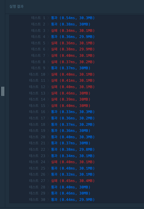 테스트케이스를 추가해보았음에도 어떤 부분에서 문제가 발생하는 것인지 찾지 못하고있다.