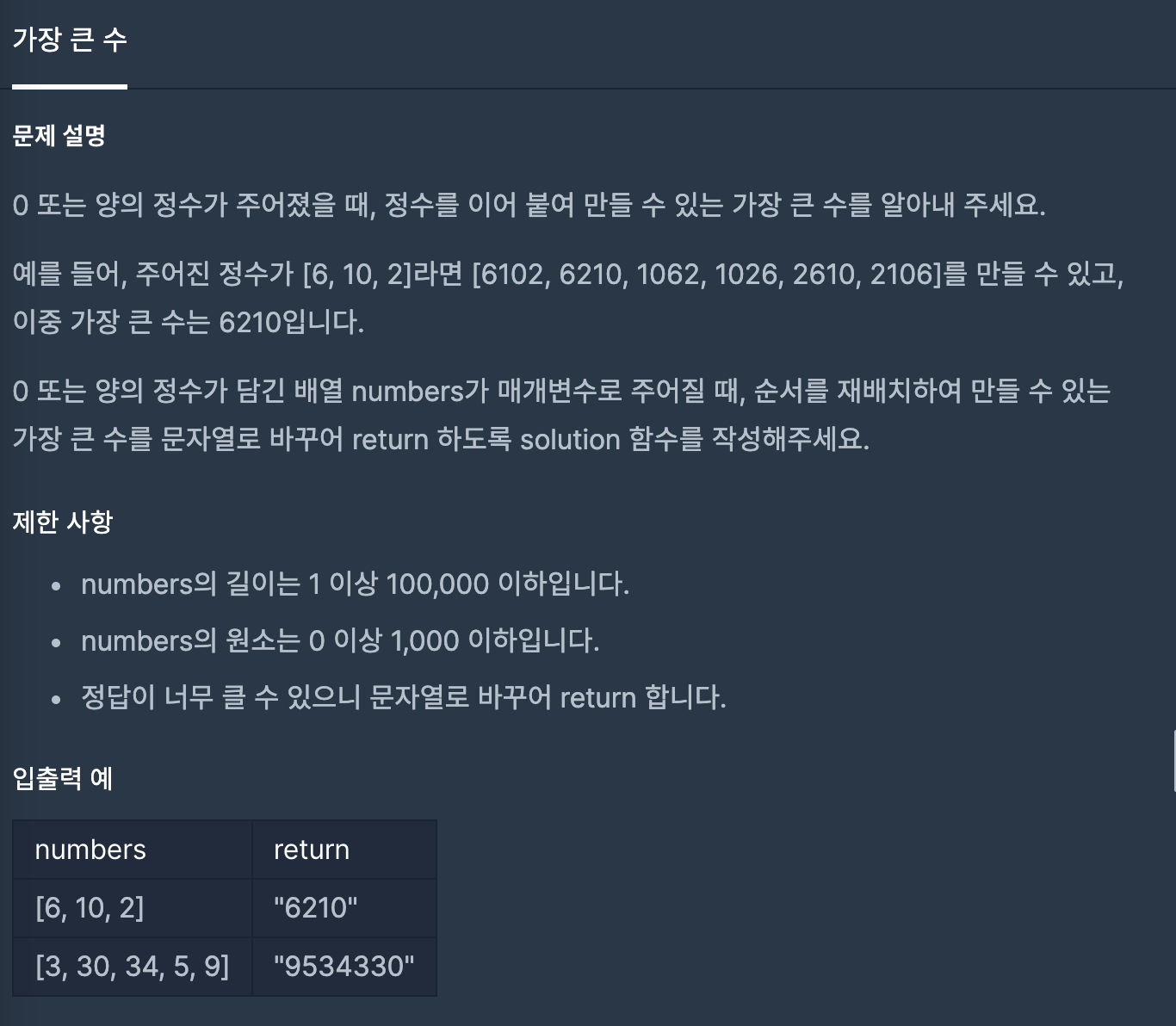 코딩테스트 연습 - 가장 큰 수