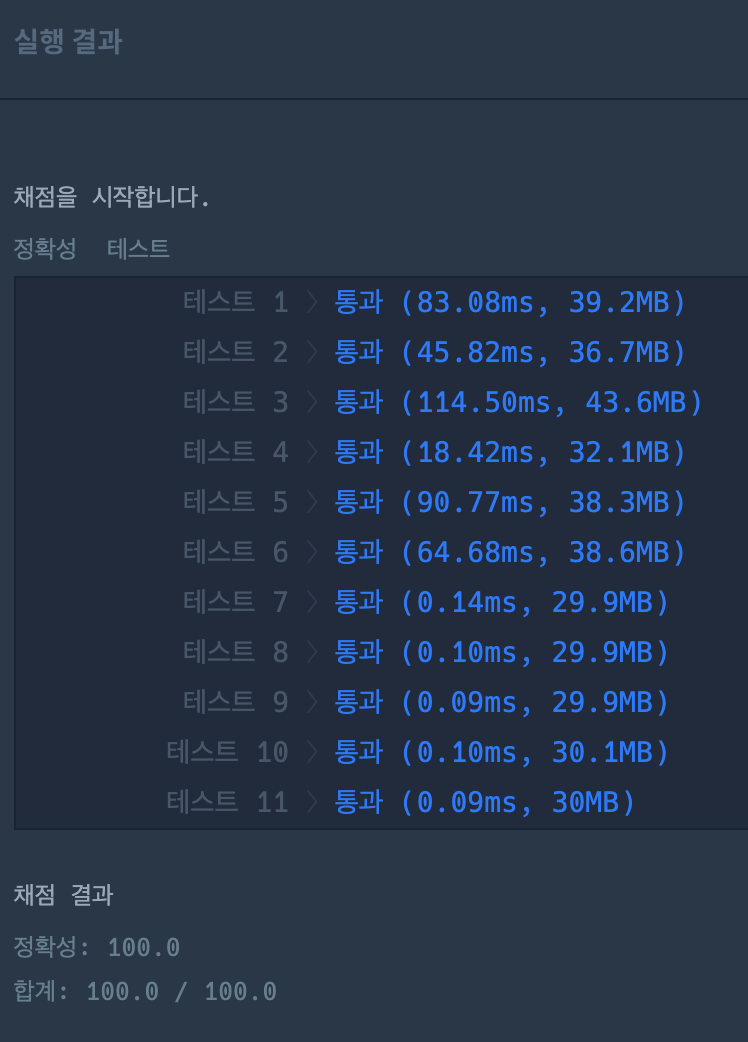 시간복잡도 O(n)코드 완성! 통과!