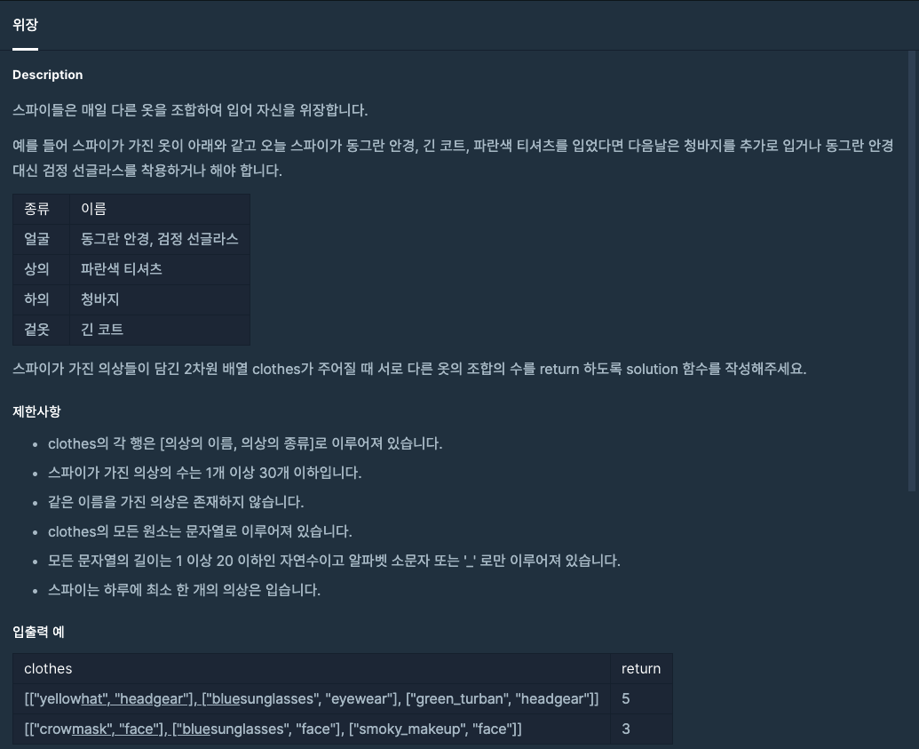 코딩테스트 연습 - 위장