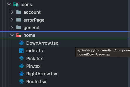 svg를 컴포넌트로 만드는 경우 그 컴포넌트의 이름 끝에는 Icon이라는 접미사를 붙여 svg 컴포넌트와 다른 컴포넌트를 구별하고 있었으나, svgr 라이브러리의 기본 설정대로 사용 시 원하는 네이밍 방식으로 받을 수 없었다.