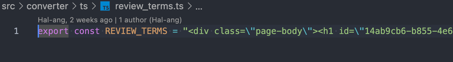 converter/html 폴더에 있는 파일들을 읽어 온 뒤, html string 값이 상수로 선언되어있는 ts 파일로 변환해주는 node 코드를 작성했다.