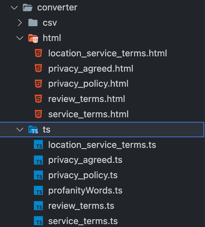 이제 약관에 수정사항이 생긴다면 노션 문서를 html로 익스포트 하여 파일을 추가한 뒤 스크립트 실행을 하면 된다.