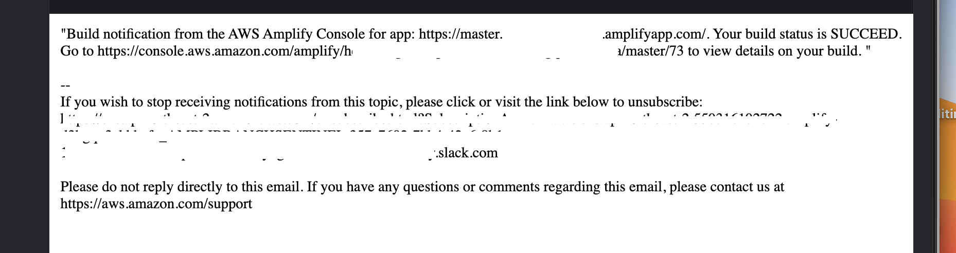 - amplify의 이메일 노티를 감지해 lambda 함수로 슬랙 웹훅에 전달하기