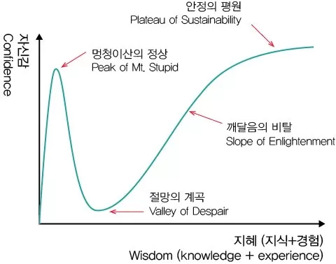 제가 좋아하는 더닝크루거 학습곡선입니다.